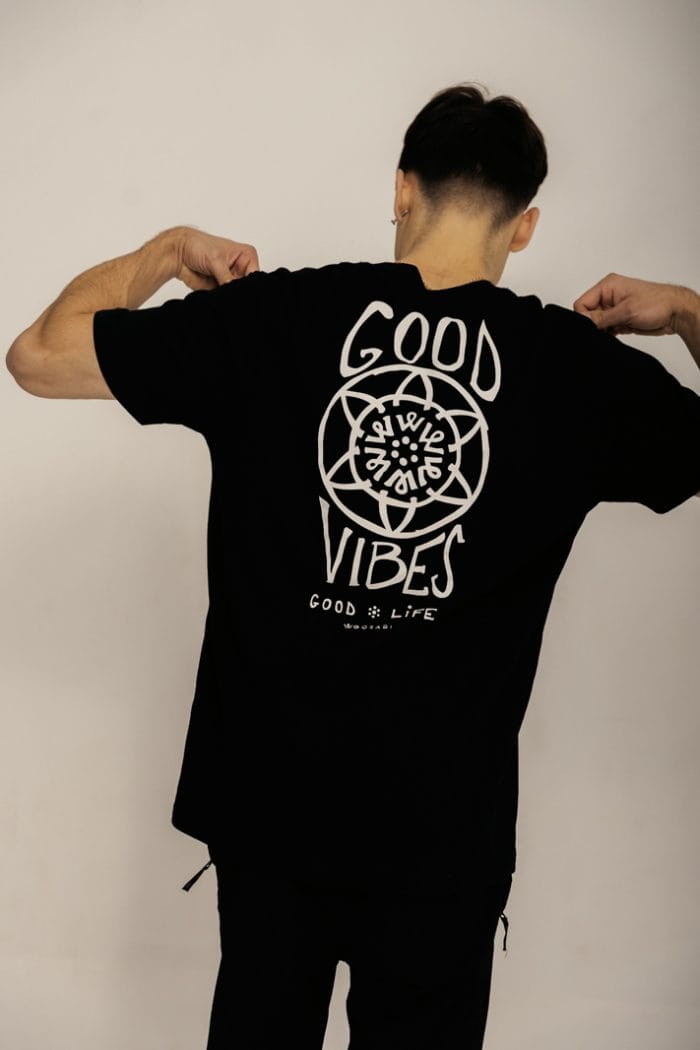 Loose fit Good Vibes T-Shirt combines a stylish and comfortable outfit, suitable for any gender. Designed with an urban, laid-back vibe and made of thick 215 GSM 100% organic cotton, it ensures durability and a perfect fit.