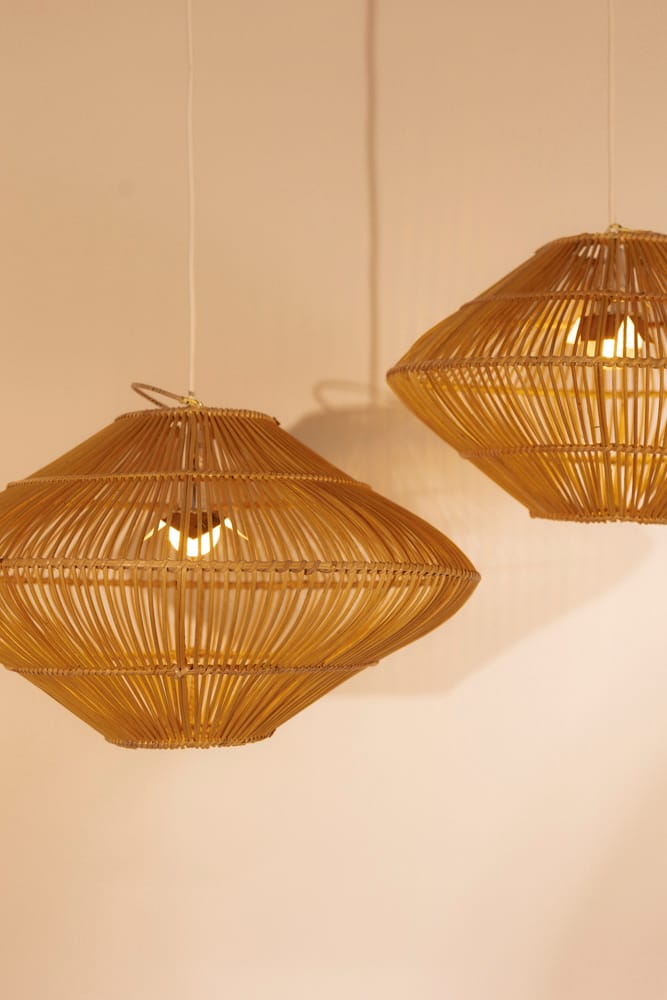 • Ręczne rzemiosło: każdy klosz został wykonany ręcznie z naturalnego rattanu przez balijskich rzemieślników, dzięki czemu nie ma dwóch identycznych egzemplarzy.
