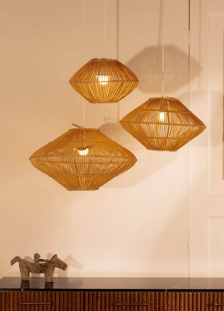 Wykonane z rattanu, pięknie rozpraszają światło, tworząc przytulną atmosferę i subtelne cienie na ścianach. Doskonale komponują się zarówno z nowoczesnymi, jak i boho czy skandynawskimi aranżacjami.